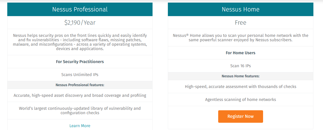 Nessus是一个功能强大而又易于使用的远程安全扫描器,Nessus对个人用户是免费的,只需要在官方网站上填邮箱,立马就能收到注册号了,对应商业用户是收费的。当然,个人用户是有16个IP限制,通过企业邮箱可以体验免费7天的Nessus专业版,IP无限制。