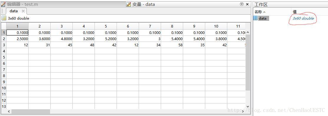 m = data['data']值得一提的是这只是我测试的数据,在实际应用过程中,数据的格式是多种多样的,所以需要做数据格式转化的模块。同时采用.mat数据的格式,用户可以用matlab打开,并对数据进行更改之类的操作。采用这种方法导入后,会自动形成数组。