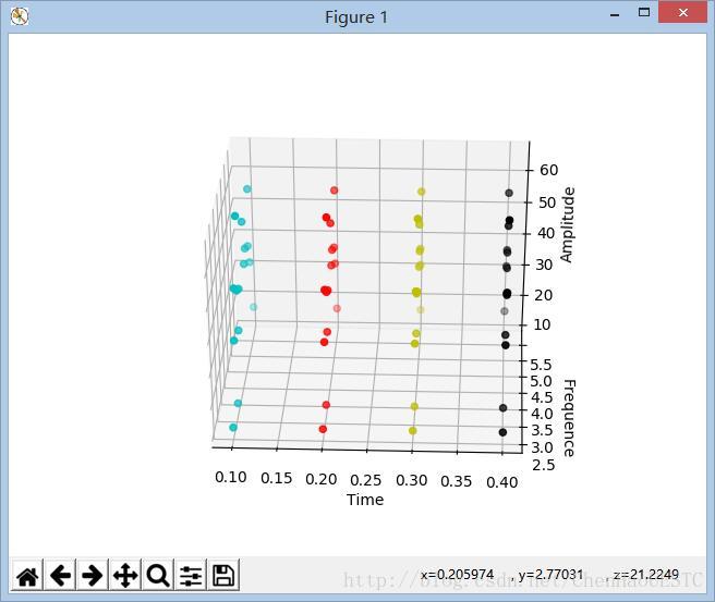 因为我是用Time变量做为Xlabel,同时模拟数据是等时间间距进行采样的,同时想要在不同的时间点采用不同的颜色。因此需要对ax.scatter(x,y,z,c)中的c变量进行更改,可以用变量代替,这样就可以用个循环结构实现颜色的切换功能。