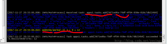 (6)在 python manage.py celery worker -c 6 -l debug 启动的窗口可以看到如下的运行过程,证明已经生效。