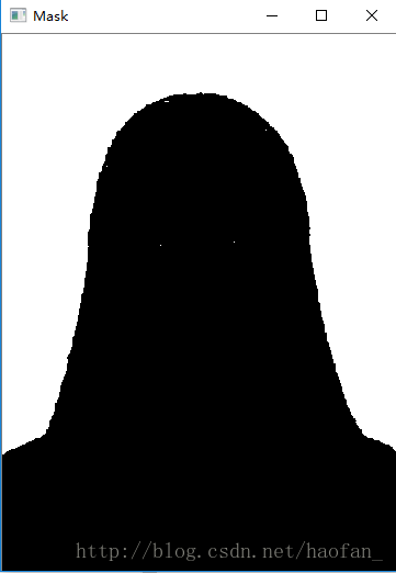 如图所示蓝色的背景在图中用白色表示,白色区域就是要替换的部分,但是黑色区域内有白点干扰,所以进一步优化。