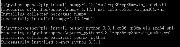 pip install numpy-1.13.1+mkl-cp36-cp36m-win_amd64.whl pip install opencv_python-3.3.1-cp36-cp36m-win_amd64.whl
