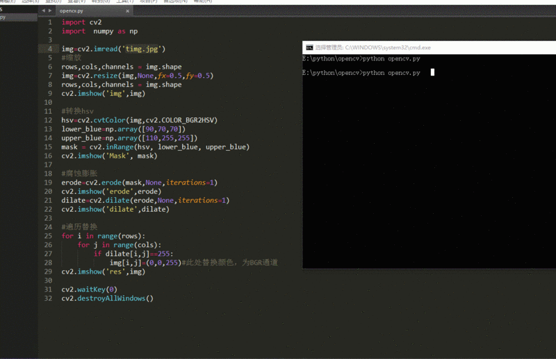 在当前文件夹新建opencv.py,拷贝以下代码