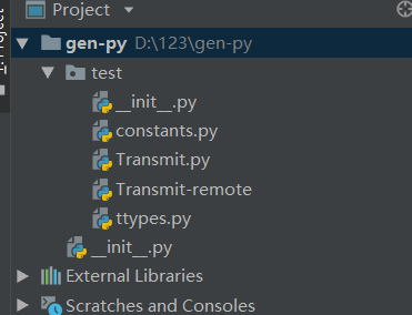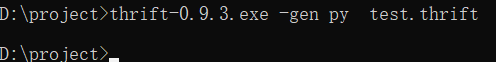 然后运行命令:thrift-0.9.3.exe -gen py test.thrift 生成 python 代码