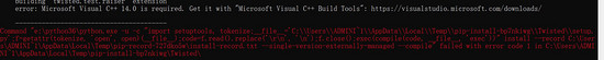 此次又报了缺少Microsoft Visual C++ 14.0环境,如下图所示: