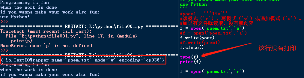 open方法第一个参数是你的文件名和路径,我的文件和程序在同一个文件夹下所以只需要填写文件名即可,第一个参数后面可以跟很多参数来完成不同的操作,而且很多参数是由默认值的,通过我们之前对函数的学习知道这样做的好处。