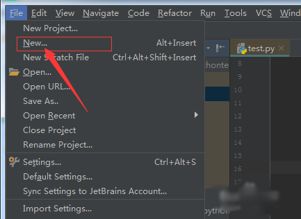 进行点击了file 的菜单之后,弹出了下拉菜单选中为 new 的选项。