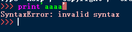 我在控制台写了一段无效的代码,将print()的括号去掉,在执行这条语句的时候,系统提示语法错误,无效的语句(我百度翻译的)。这就是错误处理器所作的工作。