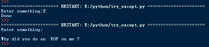 在程序获取用户输入的时候,我们使用CTRL+d引发了一个EOFError错误,接下来我们尝试去处理这样的错误。
