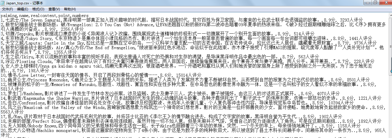writer.writerow(('paiming', 'name', 'realcontent', 'point', 'numbers'))