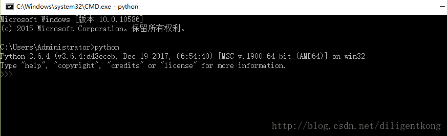 6.为了检查我们的python是否安装成功,可以在命令窗口中输入python进行查询,如显示下图一的信息则表示成功了。