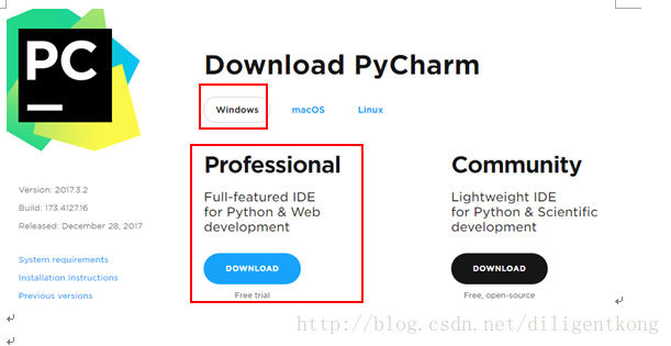 1.到官网下载pycharm,https://www.jetbrains.com/pycharm/download/
