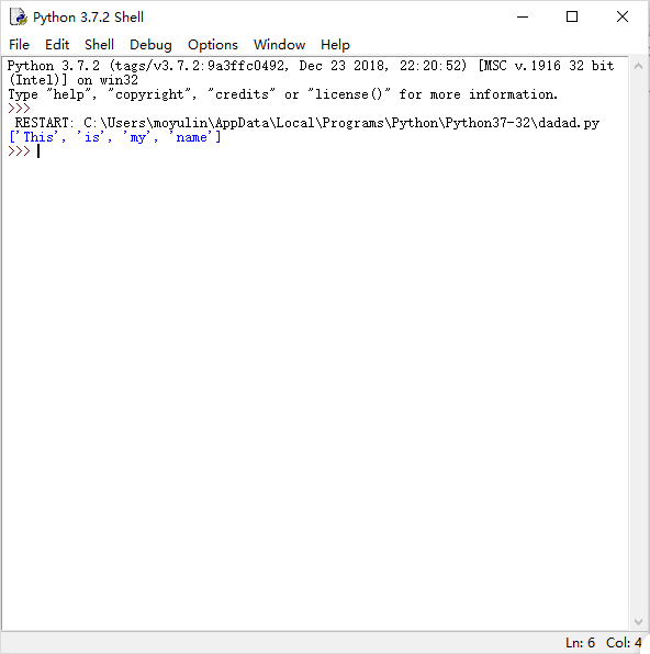 这个程序运用类与正则表达式匹配来写,可以删除重复的英文并输出,这里输入 This is my name
