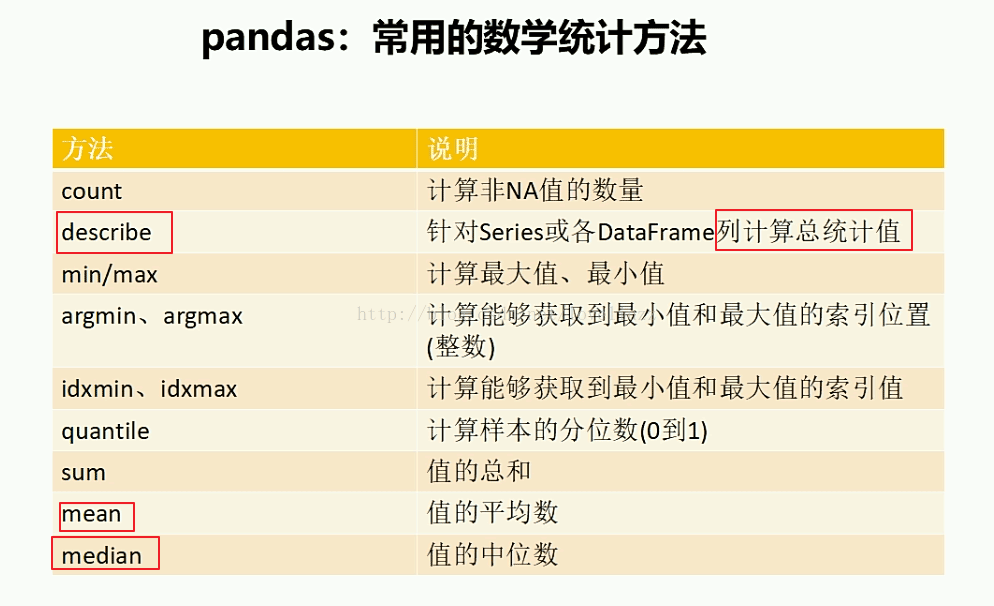 #pandas常用数学统计方法
