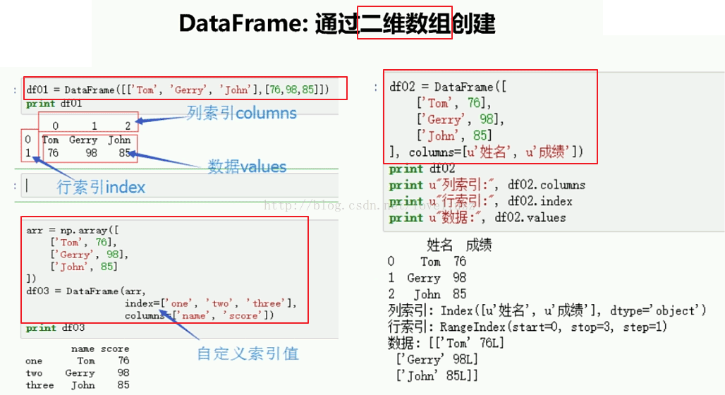 d2 = DataFrame(arr,index=["01","02","03","04"],columns=["姓名","成绩"])