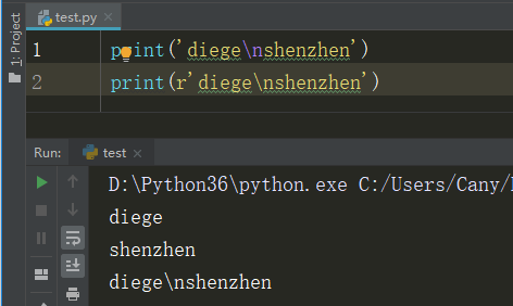 Python 使用反斜杠()转义特殊字符,如果你不想让反斜杠发生转义,可以在字符串前面添加一个 r,表示原始字符串。