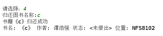 name = input('归还图书名称:')