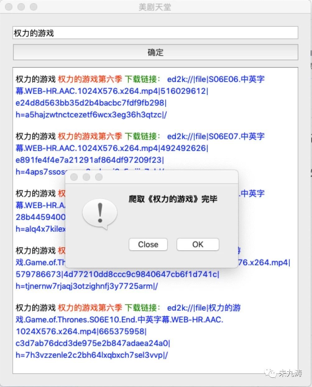 至此我们就将所有我们搜索到的 权力的游戏 的下载链接拿到手了,接下来就是写图形界面了。