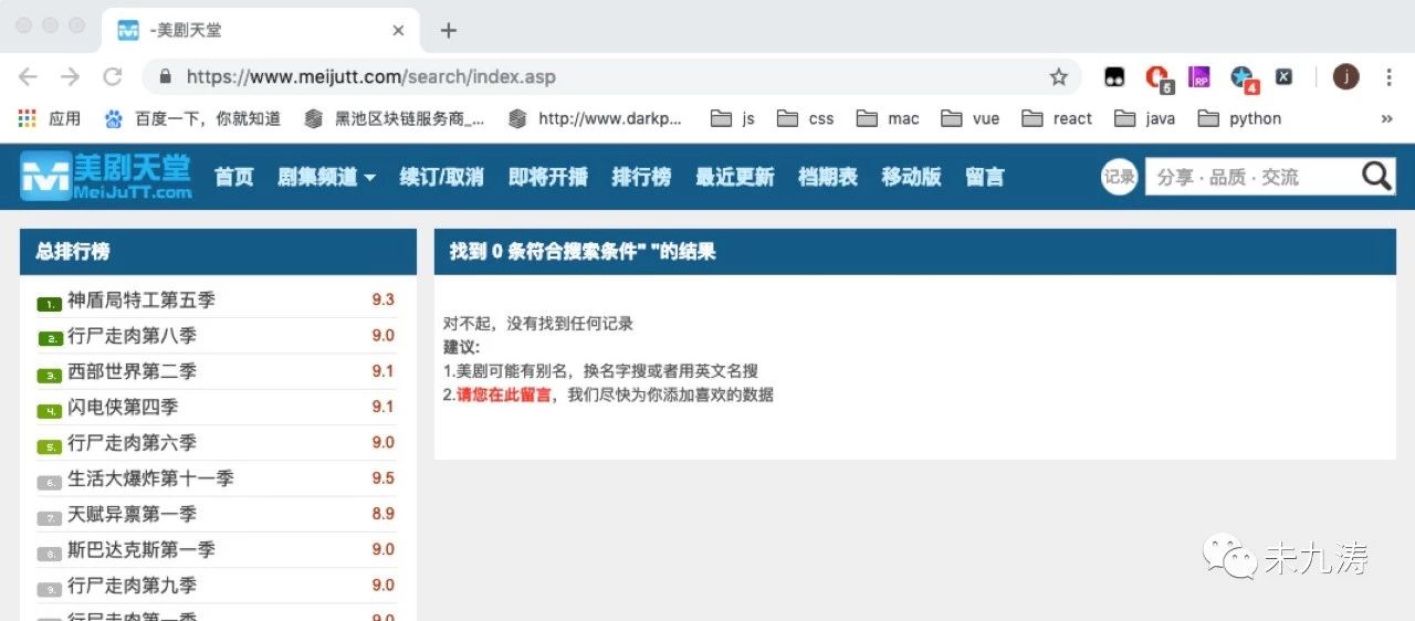 令人遗憾的是 url 链接为https://www.meijutt.com/search/index.asp,显然没有为我们提供任何有用的信息,当我们刷新页面时,如下图: