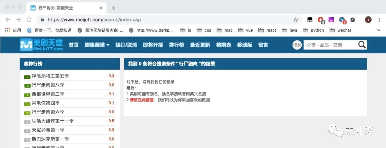 其中我们还需要做判断,搜索结果是否存在,比如我们搜索 行尸跑肉,结果不存在。