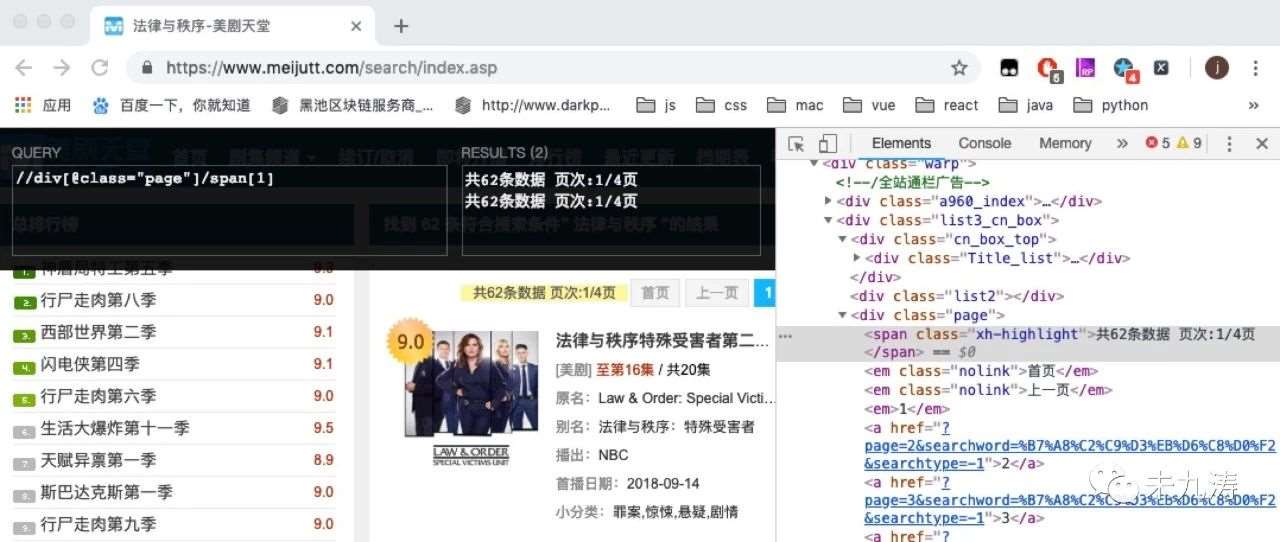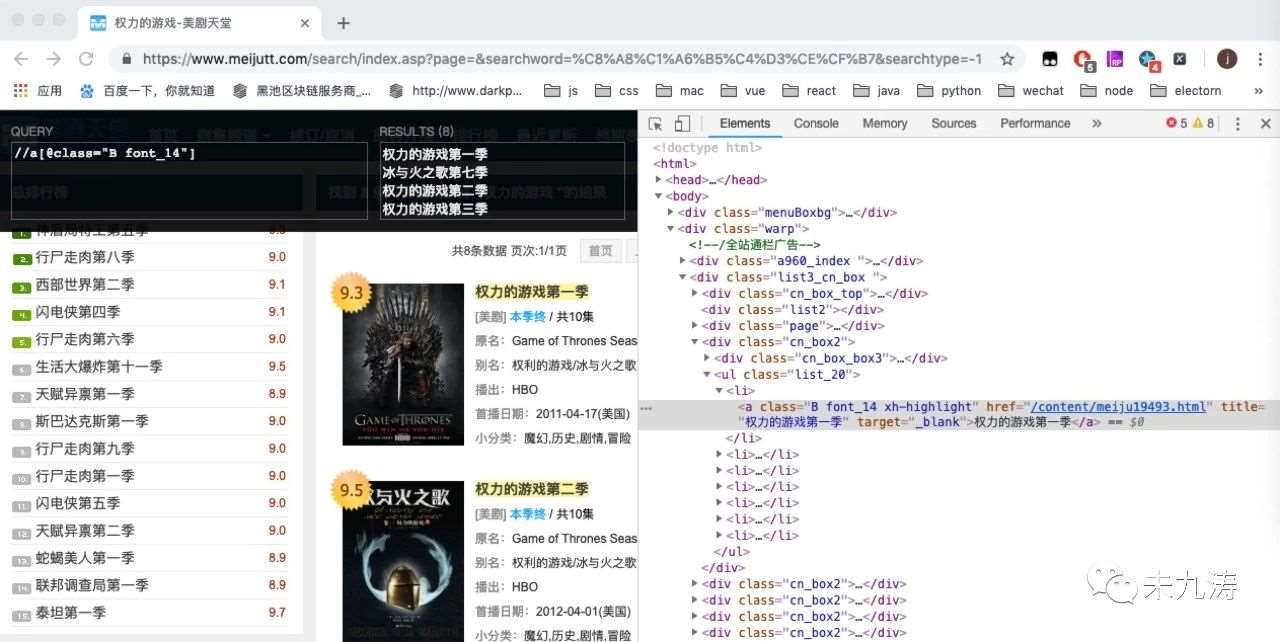 我们通过谷歌的 xpath 插件对页面内的 dom 进行搜索,发现我们要选取的 class 类名。