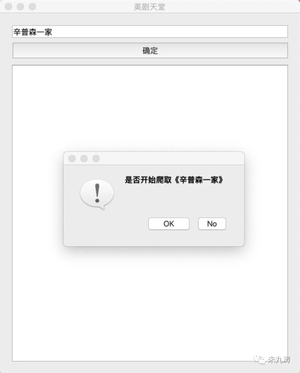 在搜索框内输入要搜索的美剧名,点击确认。提示一下是否要爬取,点击 No 不爬取,点击 OK 爬取。