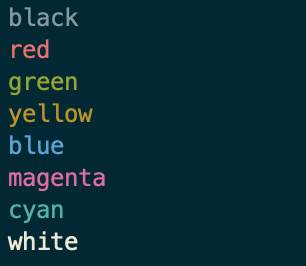 往往我们更关注字体颜色,几个字体颜色效果如下,我用的 iTerm2 的深色背景,效果会有点偏差
