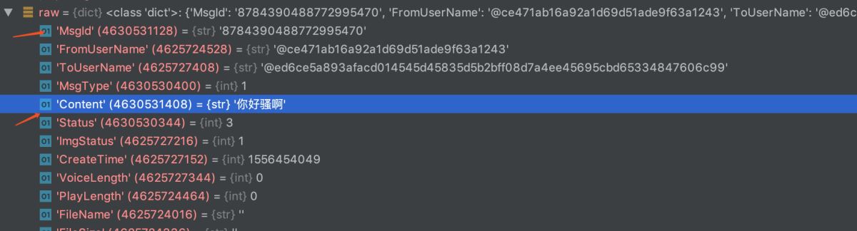 正常消息:Content='你好骚啊',大家留意一下MsgId='8784390488772995470'