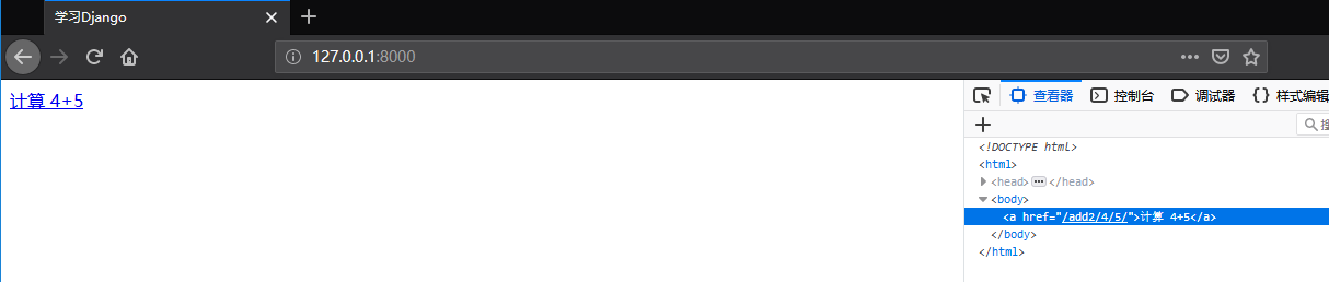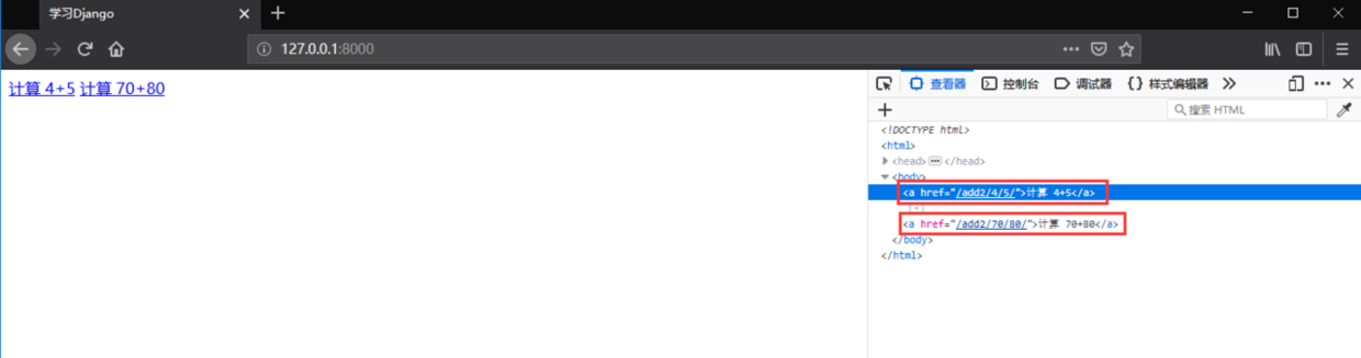 点击第一个a标签跳转请求的url为http://127.0.0.1:8000/add2/4/5/