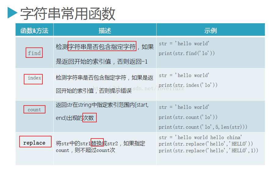 6、字符串常用操作——查找字符的索引:调用.find()方法(找不到返回-1)
