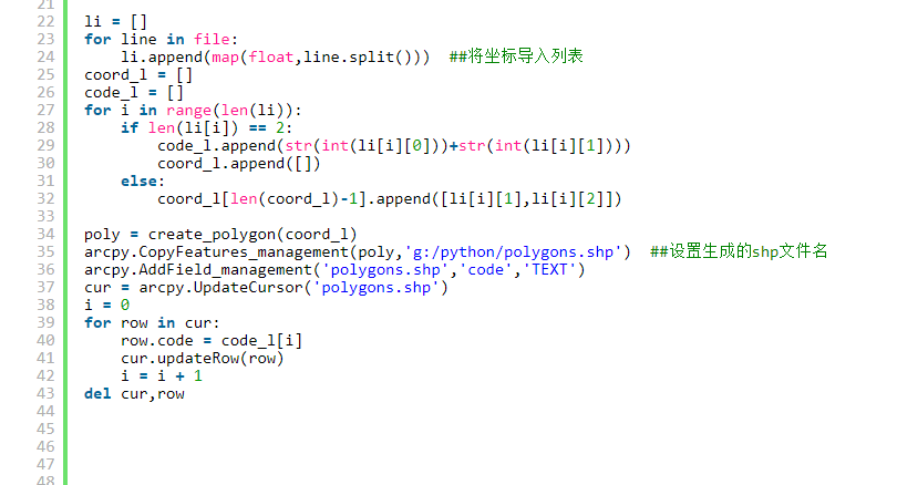 将坐标导入列表,设置生成的shp文件名,数据以逗号分割,第一个数据为x坐标,第二个为y坐标。