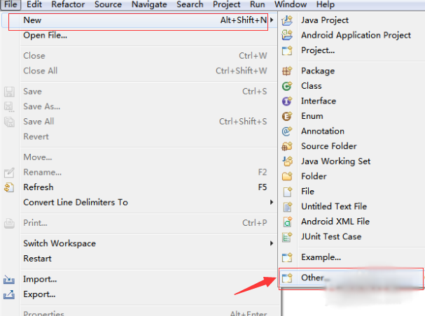 打开Eclipse,选择菜单中【file】》》new》》other