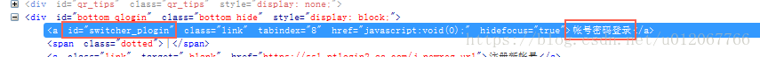 selenium可以实现对网页元素的定位,我这里是通过id属性来定位“帐号密码登录”按钮的。这里需要注意的是,有时候可能会因为网络不好等问题导致加载登录入口页会很慢,所以在点击“帐号密码登录”按钮前,需要做一个判断:判断代表“帐号密码登录”的HTML元素是否已经加载完成。