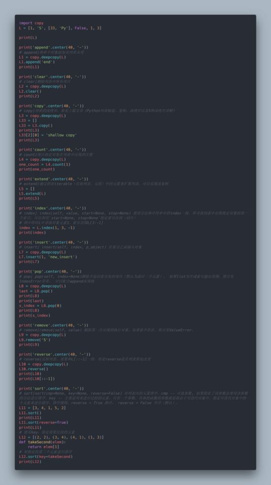 | copy | 列表的浅拷贝,参见上篇文章《Python列表赋值,复制,深拷贝以及5种浅拷贝详解》 |