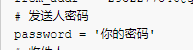 # 发送人 from_name = 'Amd794' # 发送人邮箱 from_addr = '2952277346@qq.com' # 发送人密码 password = '你的密码' # 收件人 to_name = 'Your' # 收件人邮箱 to_addr = '2952277346@qq.com' # 邮箱服务 smtp_server = 'smtp.qq.com'