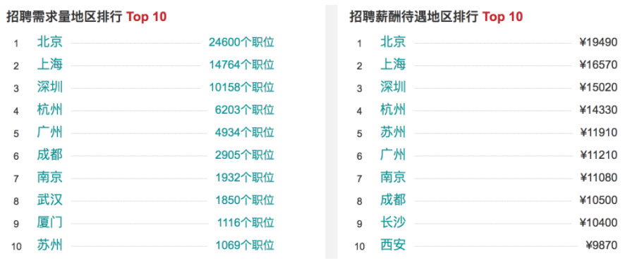 下图显示了主要城市Python招聘需求量及薪资待遇排行榜(截止到2018年5月)。