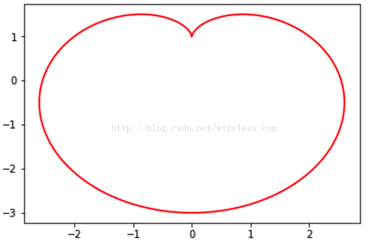 但这不是六行代码呀?也不是r=a(1-sinθ)呀? 的确如此,那是极坐标系,python 的matplotlib同样支持极坐标系的,爱心线的六行pyton代码如下: