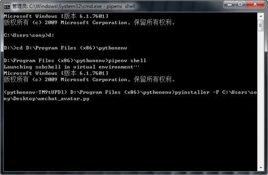 pyinstaller -F C:\Users\sony\Desktop\wechat_avatar.py # 程序路径要改成你电脑上的路径 # -F 表示生成单个 exe 文件,方便运行