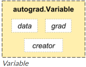 Pytorch里面的Variable类型数据功能更加强大,相当于是在Tensor外层套了一个壳子,这个壳子赋予了前向传播,反向传播,自动求导等功能,在计算图的构建中起的很重要的作用。Variable的结构图如下: