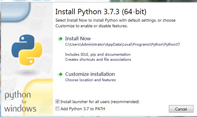 这里的AddPython 3.7to PATH记得勾上,这样你就可以在CMD里面直接使用Python了(打开cmd,输入python就OK啦。)