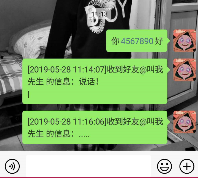 运行后会保持登录状态,开启自动回复模式,手机上查看: