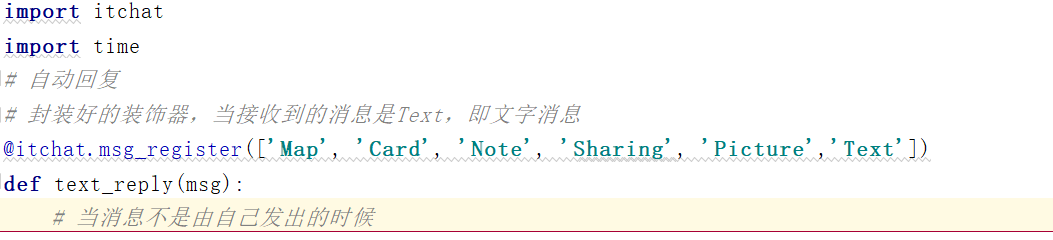 @itchat.msg_register(['Map', 'Card', 'Note', 'Sharing', 'Picture','Text'])