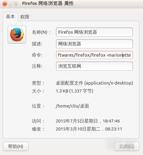 使用 -marionette 参数启动 Firefox. 比较简单的一种做法就是右键单击Firefox的桌面图标, 然后选择属性, 最后在命令一栏最后添加 <空格> -marionette.