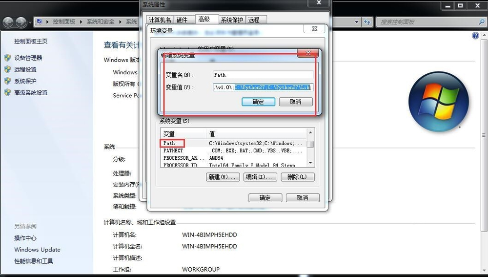 将python添加到环境变量中,将 C:\Python27\Scripts、C:\Python27\Lib、C:\Python27\Scripts添加到环境变量