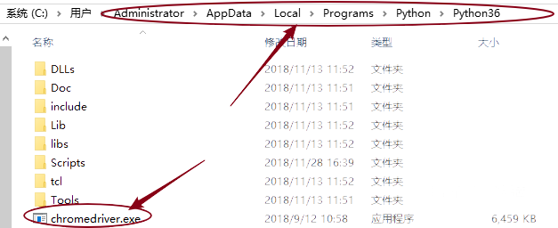 同时需要安装chromedriver,并放在python安装文件夹下,如下图所示。