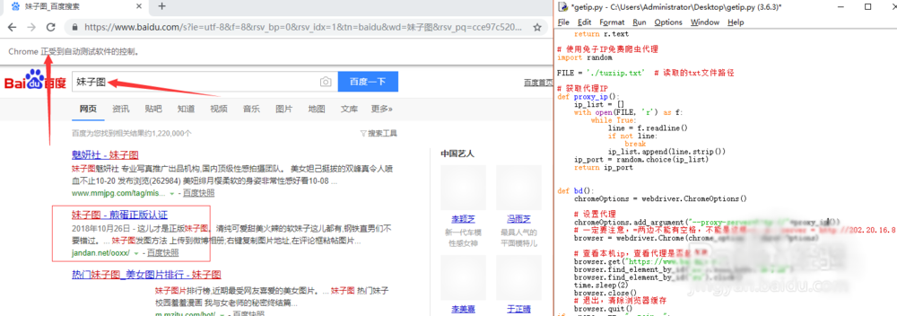 通过python配合爬虫接口利用selenium实现自动化打开chrome浏览器,进行百度关键词搜索。