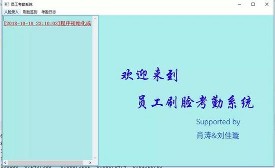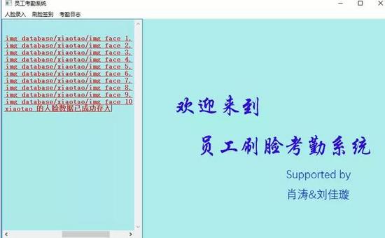 (1)仿照通用型软件界面设计的原则,所有的操作都在菜单栏里实现,一部分区域用于展示摄像头实时读取并由程序加工后的视频流信息,另一部分区域做控制台输出,打印相关信息,比如提示员工面部信息添加成功、添加失败及其原因,提示员工打卡成功、打卡失败及其原因;添加面部信息时人是必须和程序进行交互的,比如输入一些相关的信息,这个时候程序是阻塞的;但是在打卡的时候,程序是不阻塞的,如果不点击关闭打卡,它会一直在打卡的模式,等待并识别每一个前来打卡的员工,这比较符合现实的使用场景。