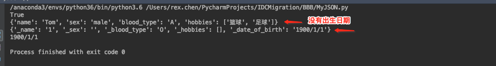 # 获取date_of_brith属性值报错,因为JSON字符串不包含这个键,但是类中的实例变量有这个,正常来讲你应该可以获取默认值,但是由于