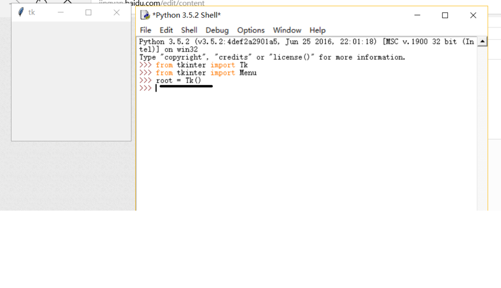 导入Tk和Menu,最好不要用from tkinter import *因为这样可能刀座某些平台不兼容,比如树莓派就需要单个导入。