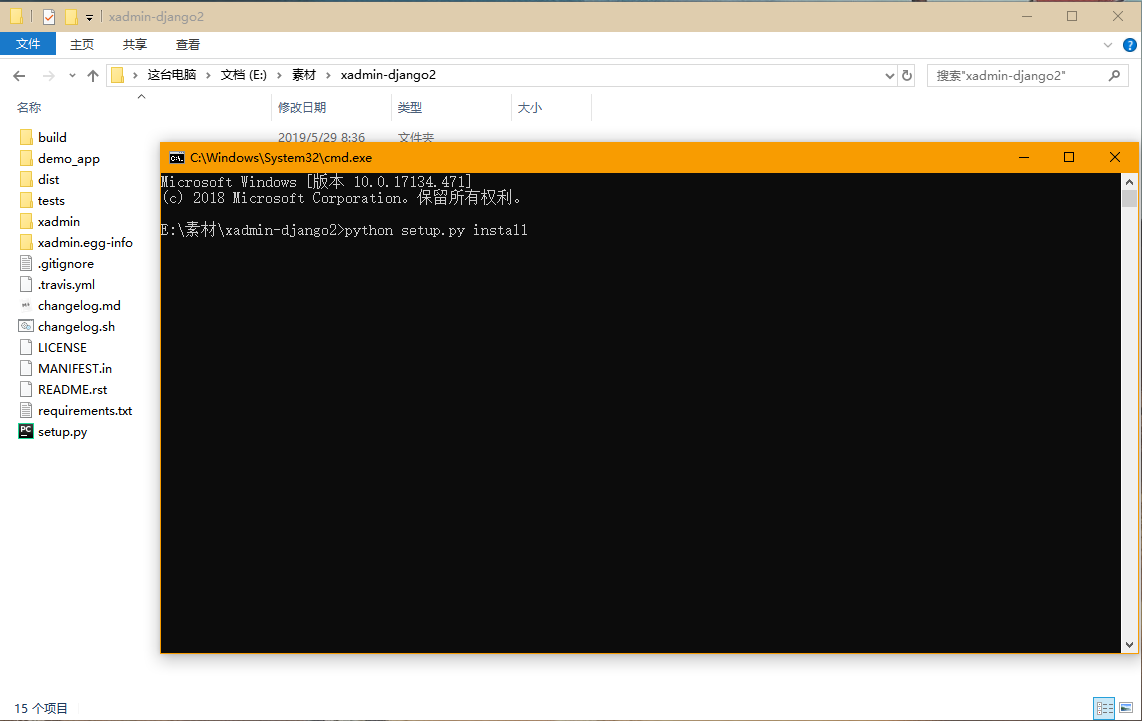 从 https://github.com/sshwsfc/xadmin/tree/django2 下载支持django2版本的xadmin包xadmin-django2.zip,解压后在路径下cmd运行